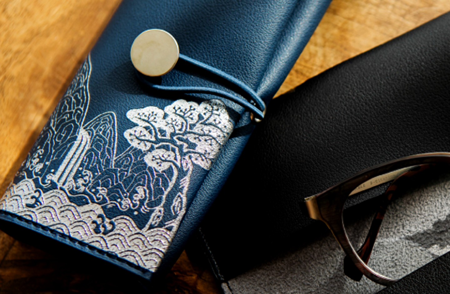 This is a leather pencil case that reinterprets Irworobongdo, a representative court painting of the Joseon Dynasty, with holographic foil.