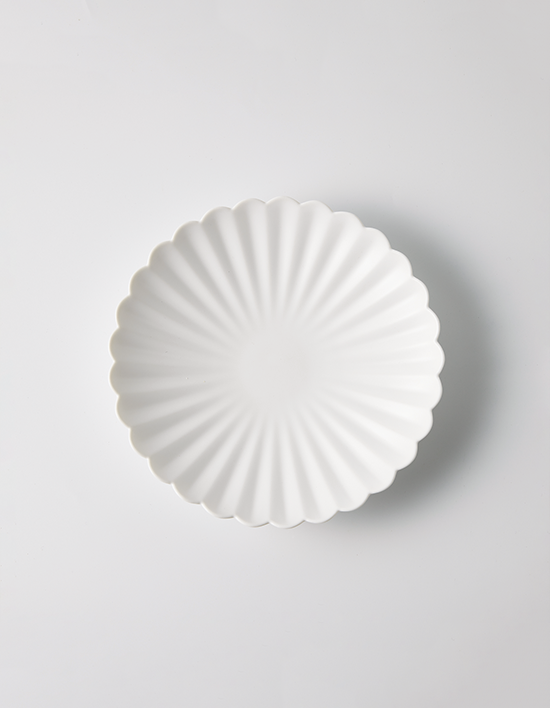 29개의 국화 꽃잎이 촘촘히 원을 이룬 활용도 높은 사이즈의 접시입니다.
