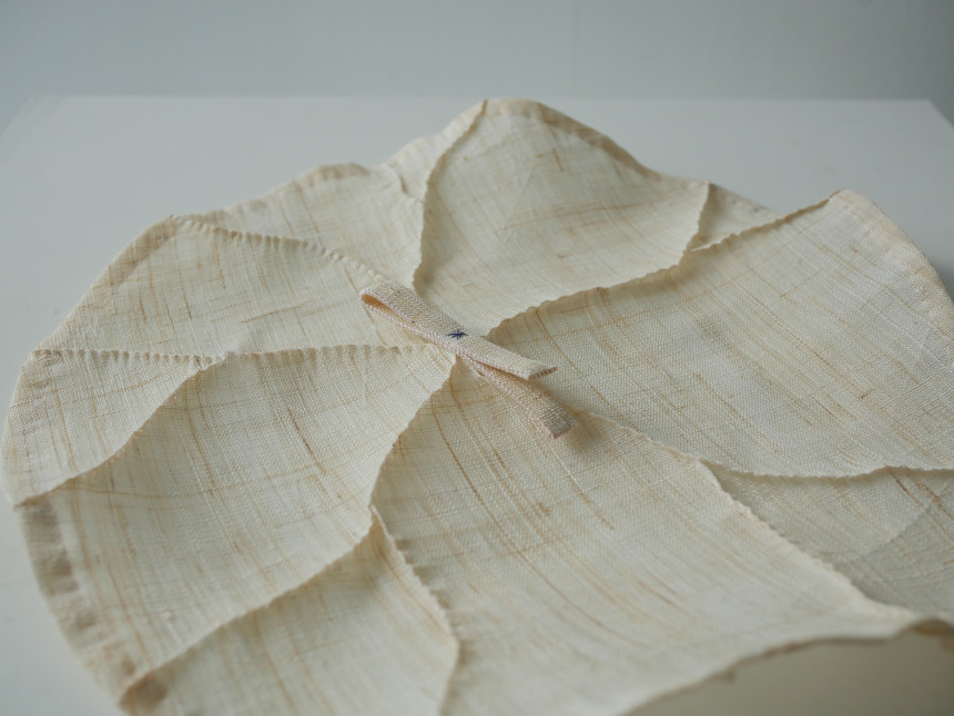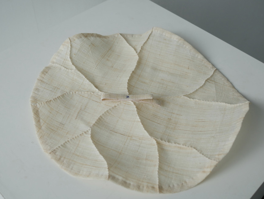 This is a handcrafted lotus leaf cloth made by sewing each leaf vein using the pinching technique.