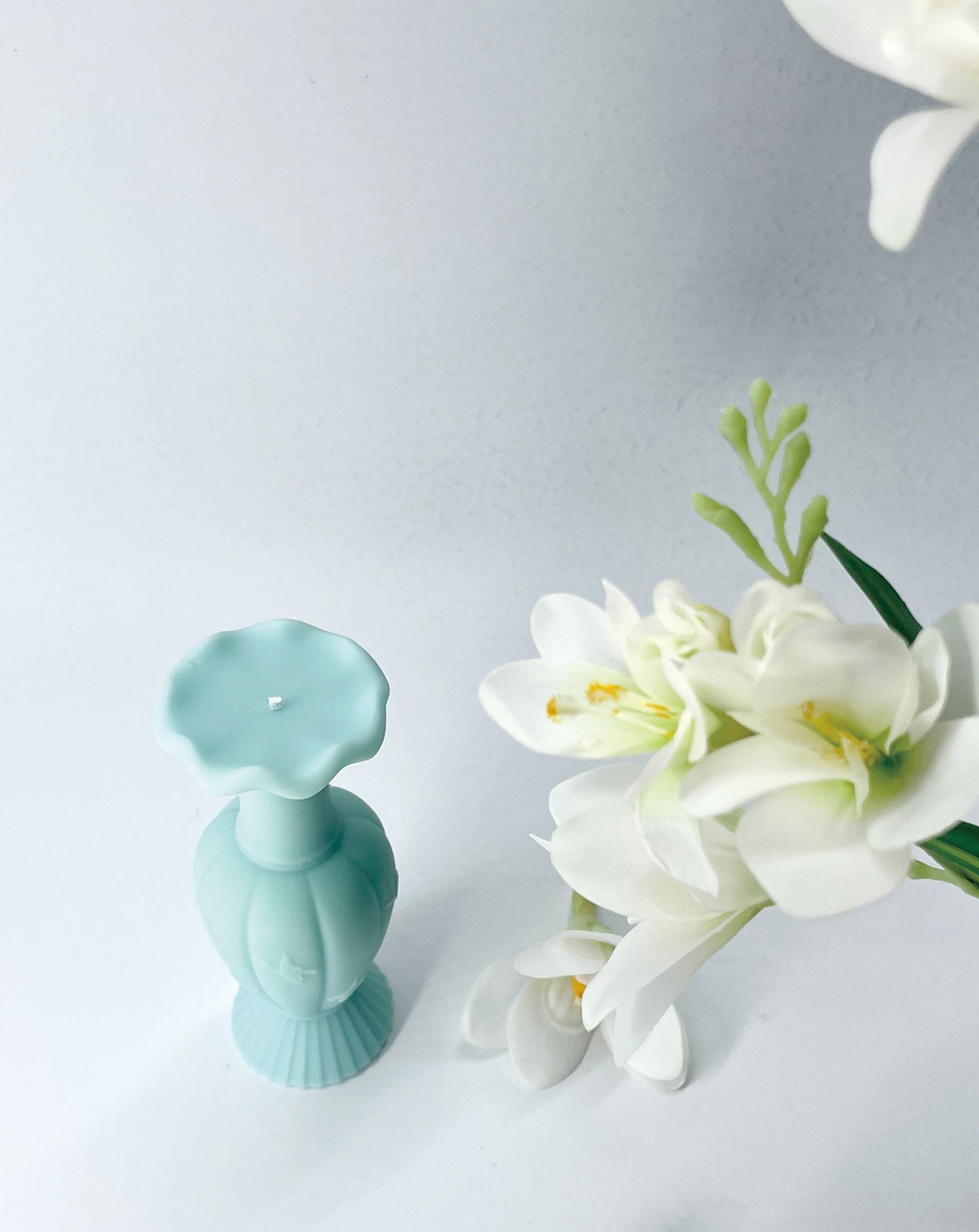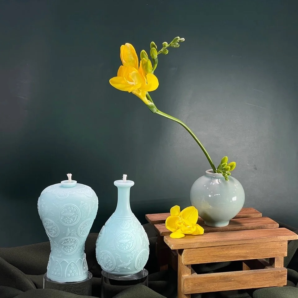 This incense candle is made by delicately recreating Goryeo celadon, the epitome of Goryeo's advanced technology and aesthetics, and is infused with the scent of freesia.