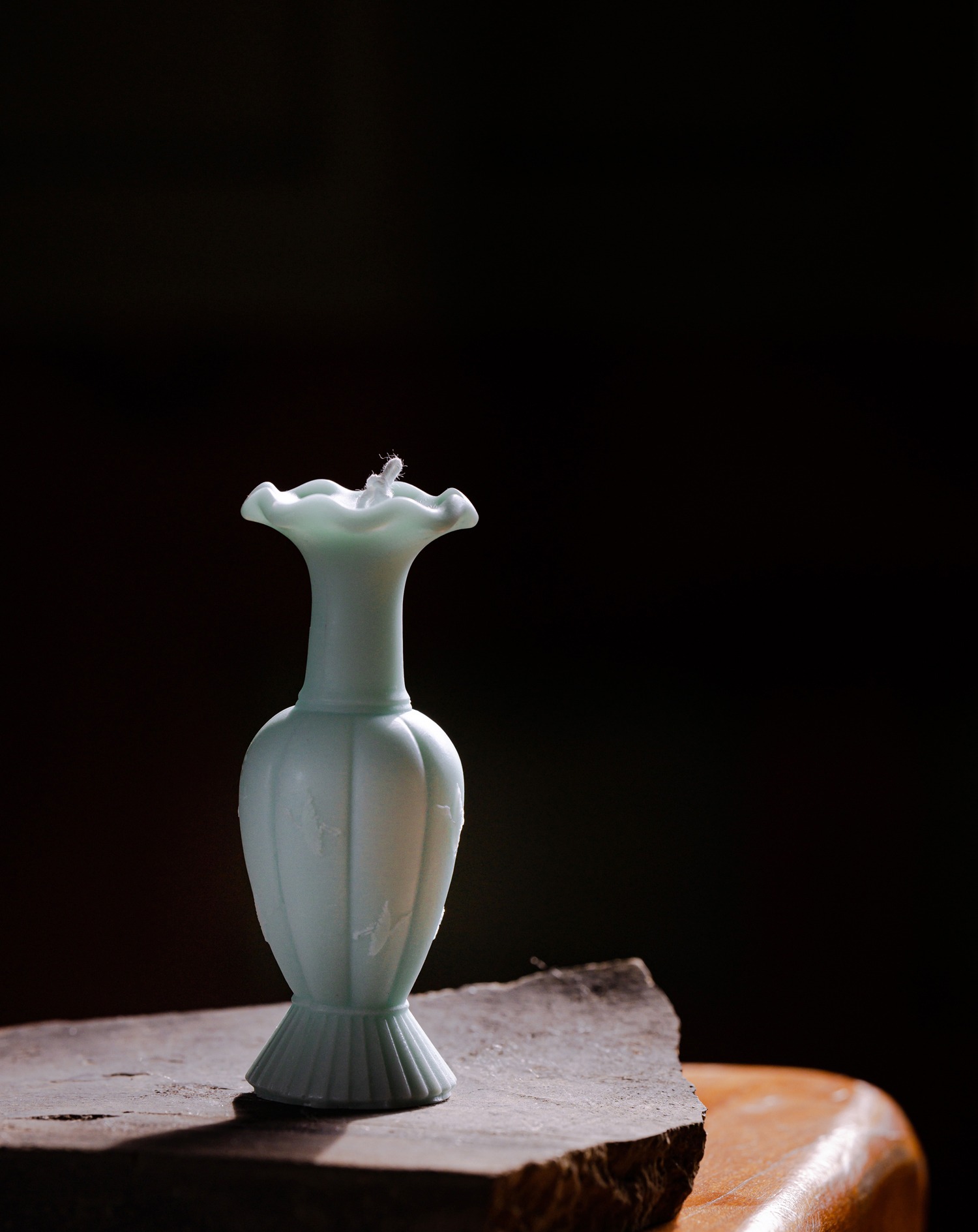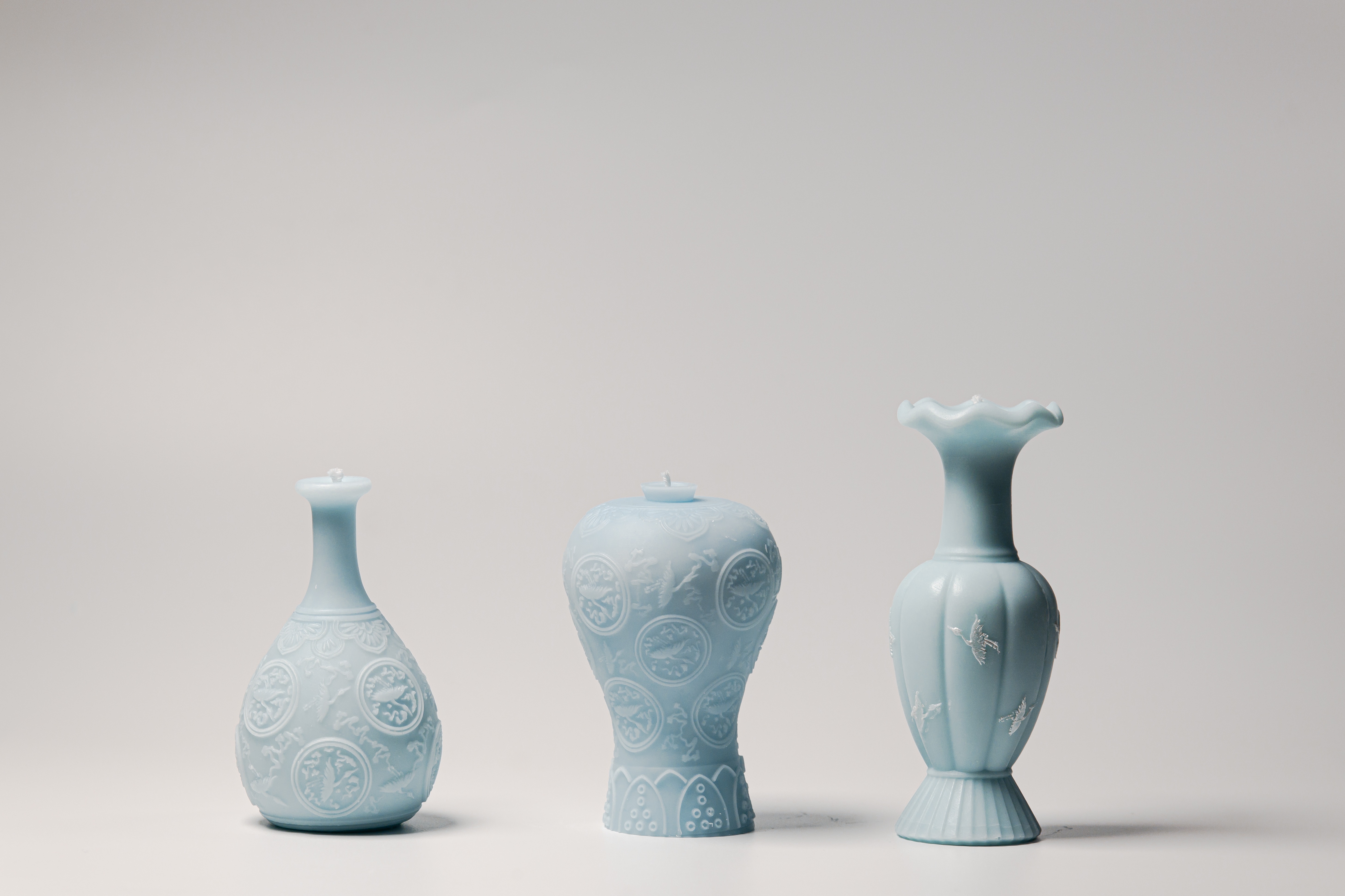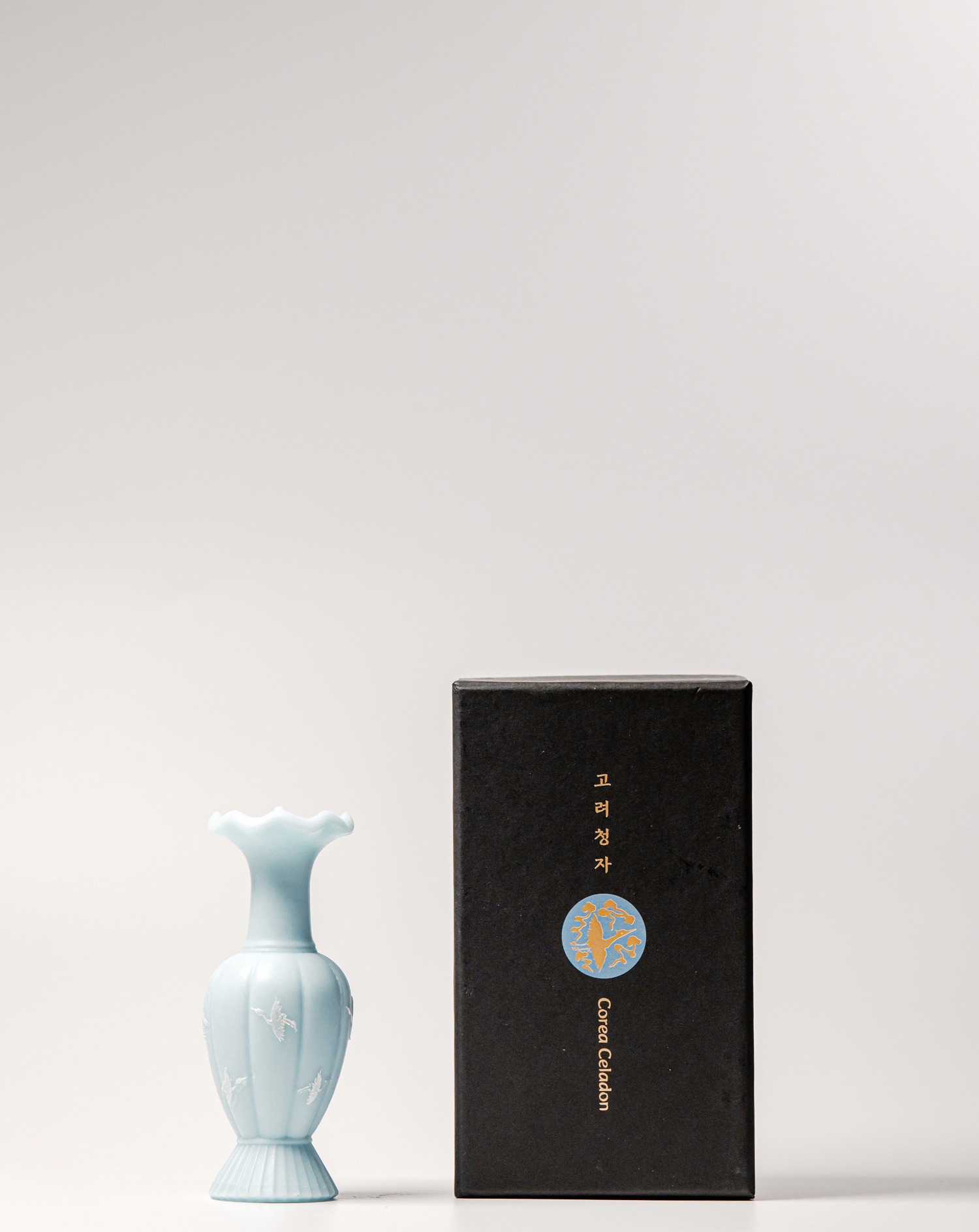 - Meticulously crafted in the form of Goryeo celadon, this candle beautifully captures the graceful image of a crane gliding between blue skies and soft clouds—making it a stunning decorative object on its own.