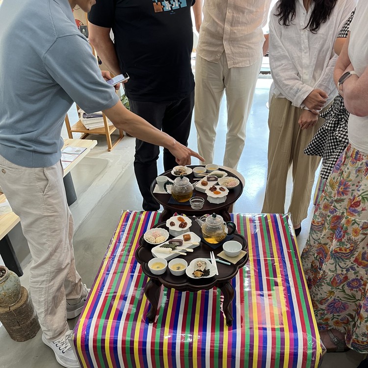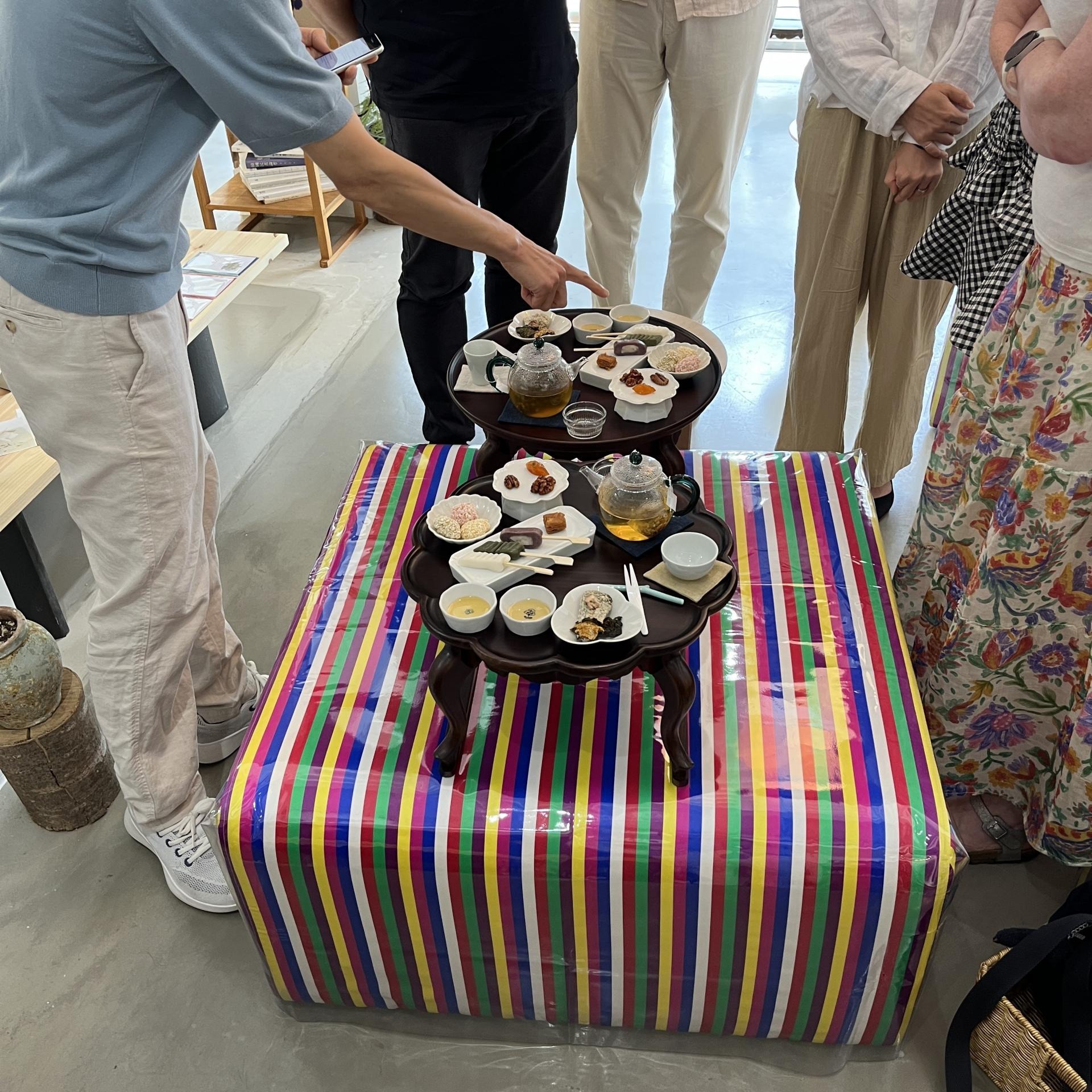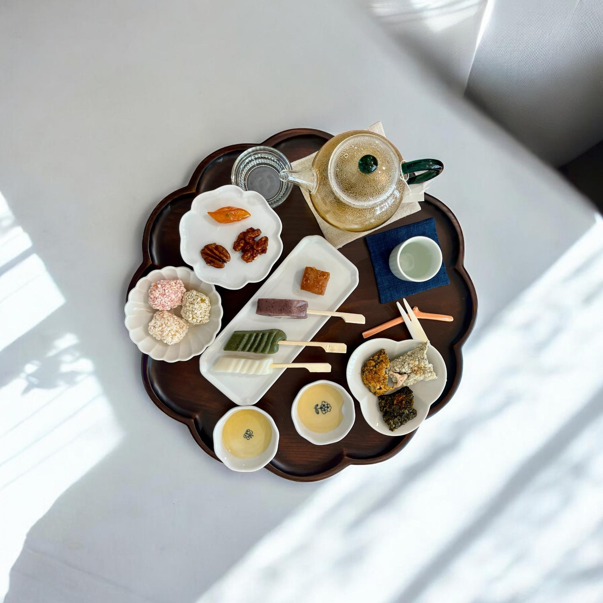 Experience a traditional Korean tea ceremony, savoring around 10 different types of Korean snacks and one type of tea on a traditional Korean patterned stool.