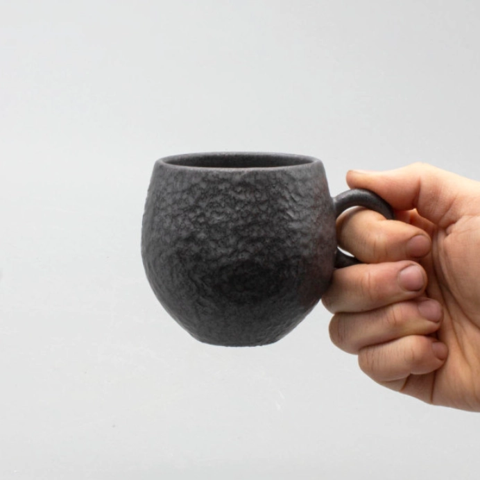 - This cup features a simple, straight-edged form—the most classic silhouette—but with a raised foot at the base that adds a subtle visual accent. Its coarse stone-like texture and calm, muted tone create an elegant and refined atmosphere.